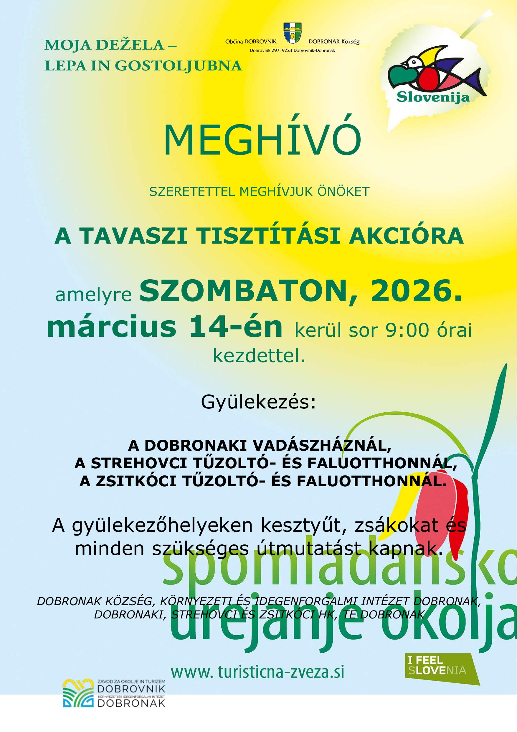 Szeretettel meghívjuk Önöket 2026. március 14-én, szombaton 9:00 órakor, hogy csatlakozzanak közös tisztítási akciónkhoz.